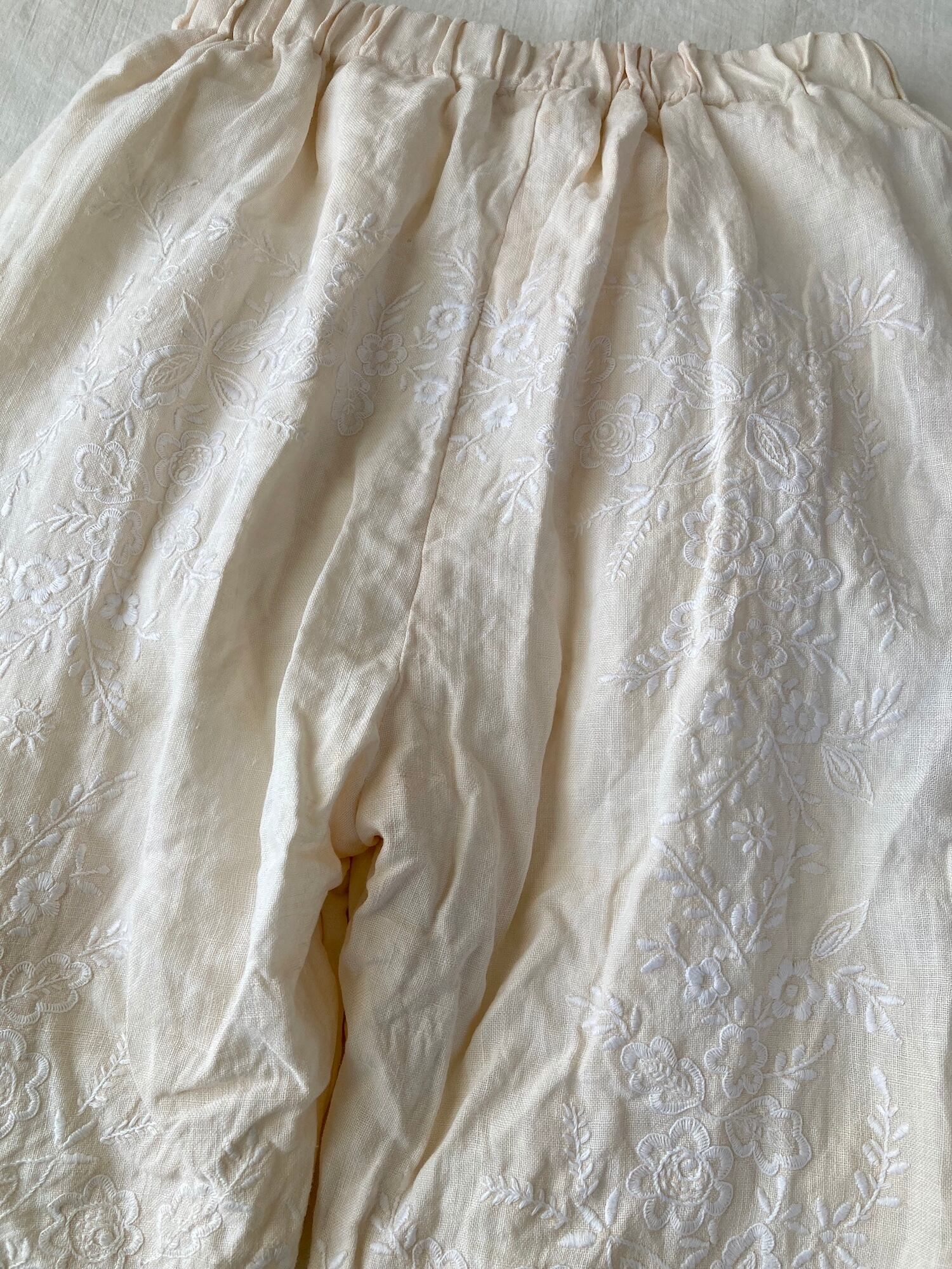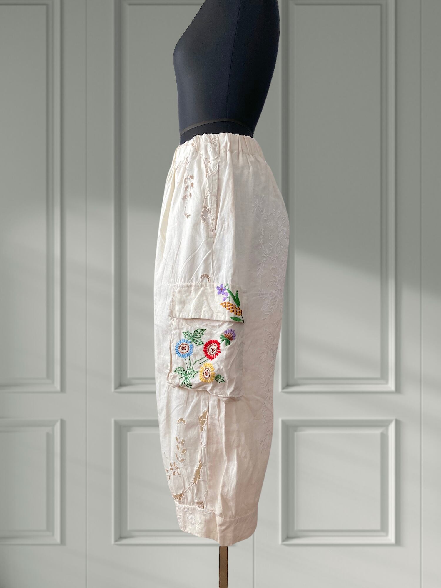 ヴィンテージ 刺繍クロス アップサイクル 裾ギャザーパンツ アンティーク リメイク 送料無料