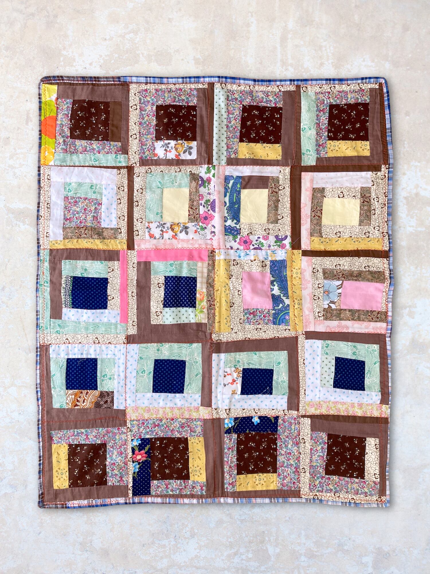 ヴィンテージ ログキャビン コットン パッチワーク ミニラグ ベビーキルト