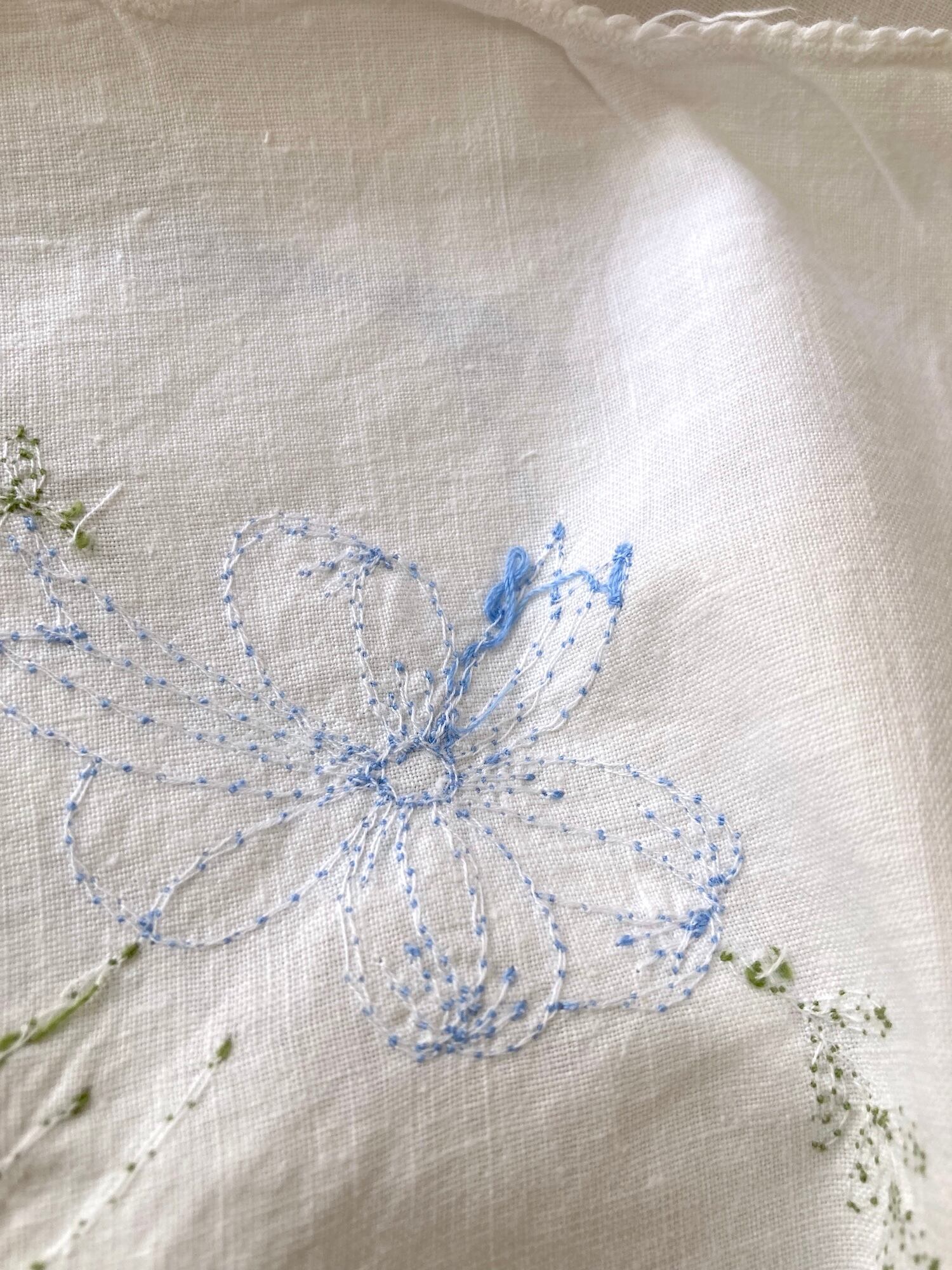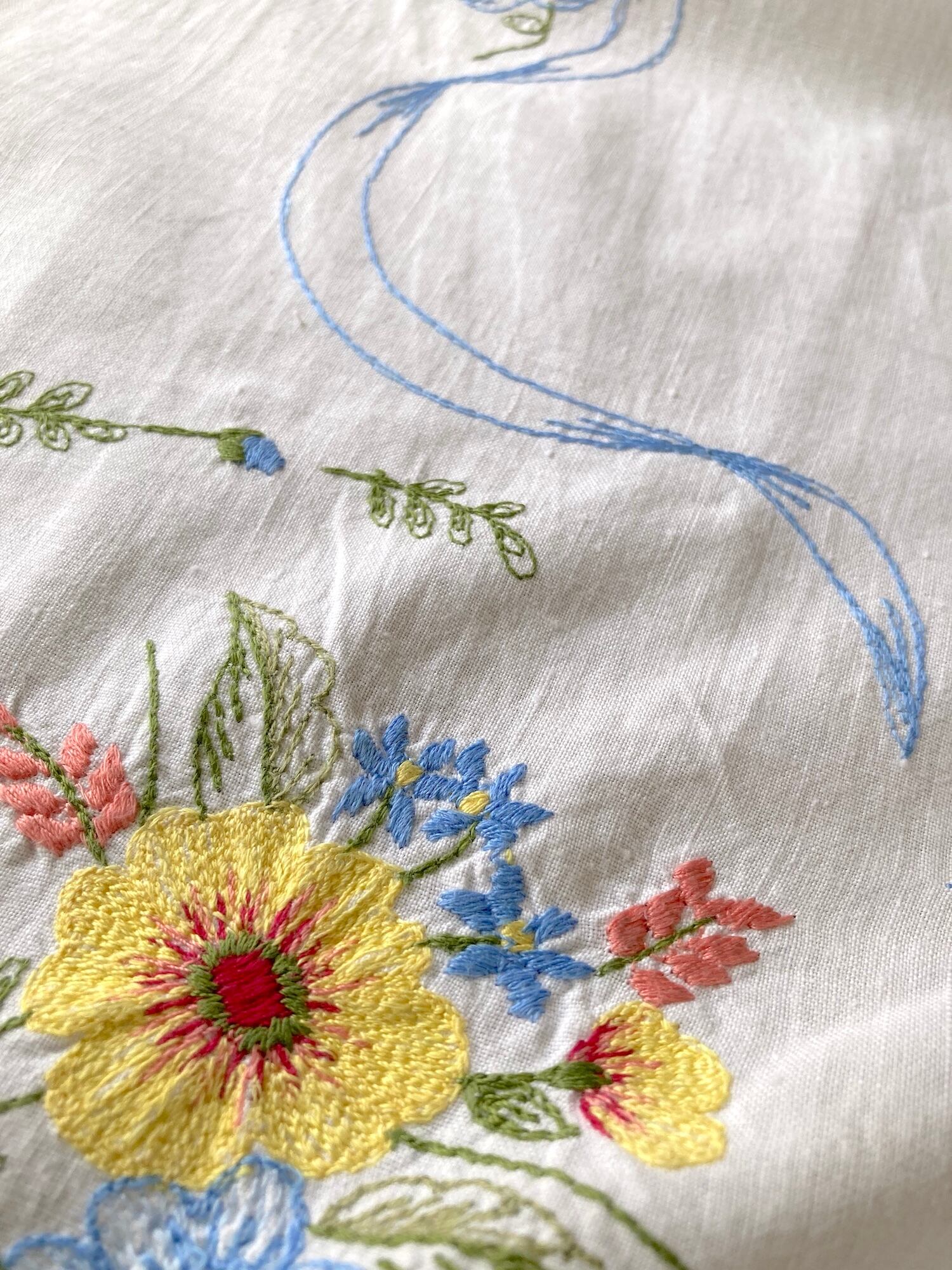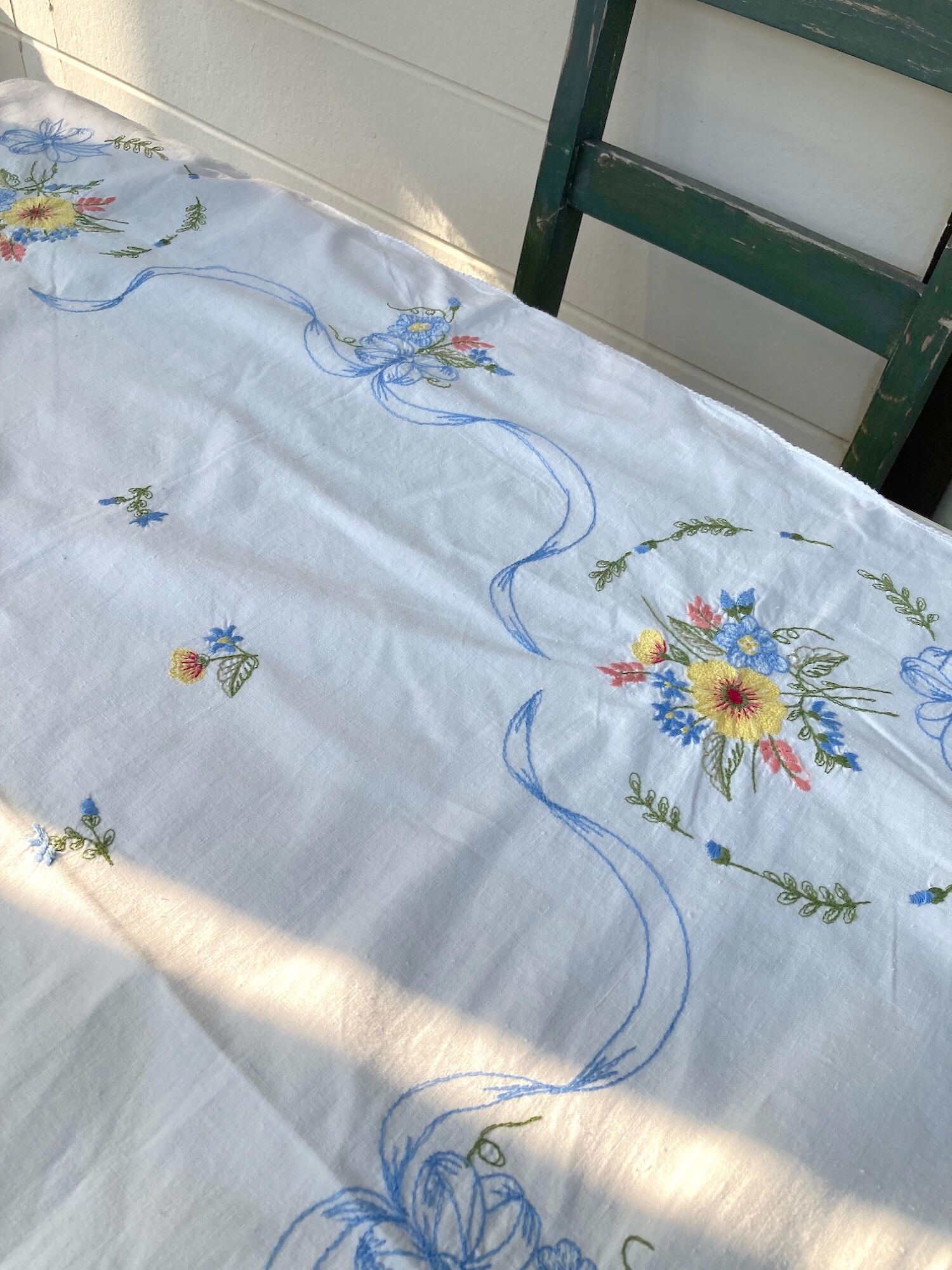 ヴィンテージ ホワイト コットン お花ブーケ刺繍 テーブルクロス
