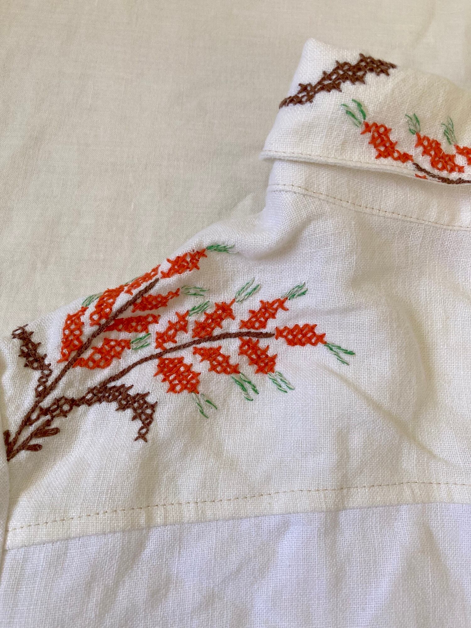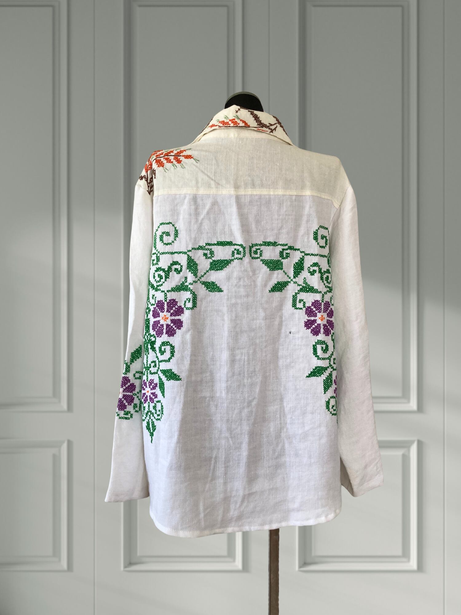 ヴィンテージ リネン 刺繍 カフタン 長袖 シャツ