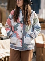 しっかり厚みのあるふわふわ中綿なので、秋から春にかけて使えます。大きめのゆったりとした作りで、幅広く対応するサイズ感です。素敵なアメリカンパッチワークが目を引くので、シンプルスタイルにパッと羽織ってかっこよく着こなしてください。