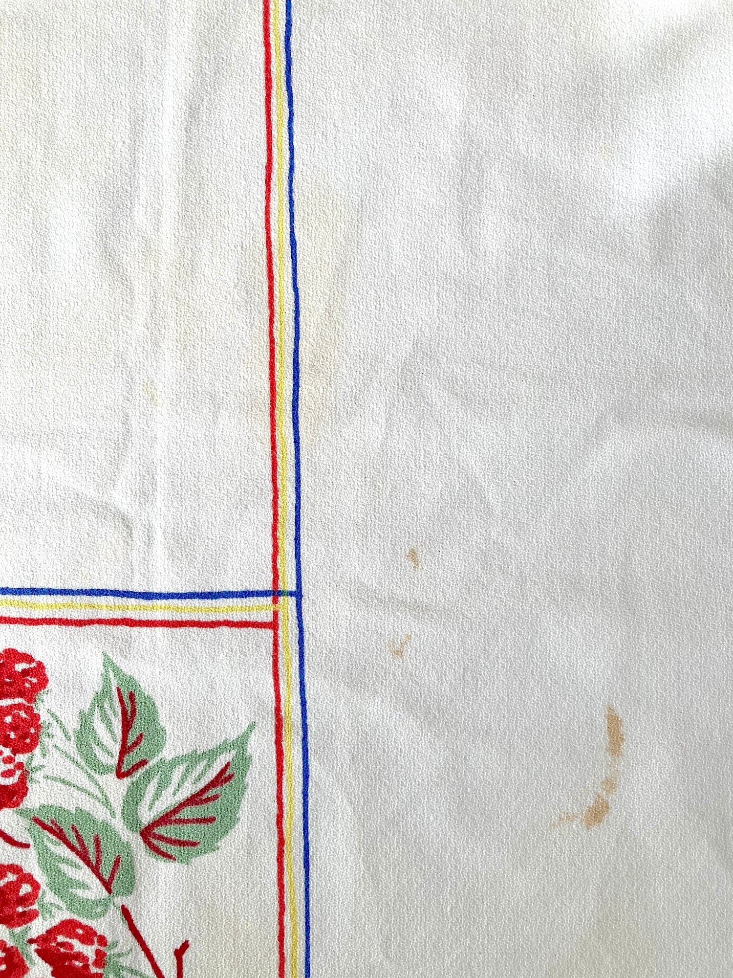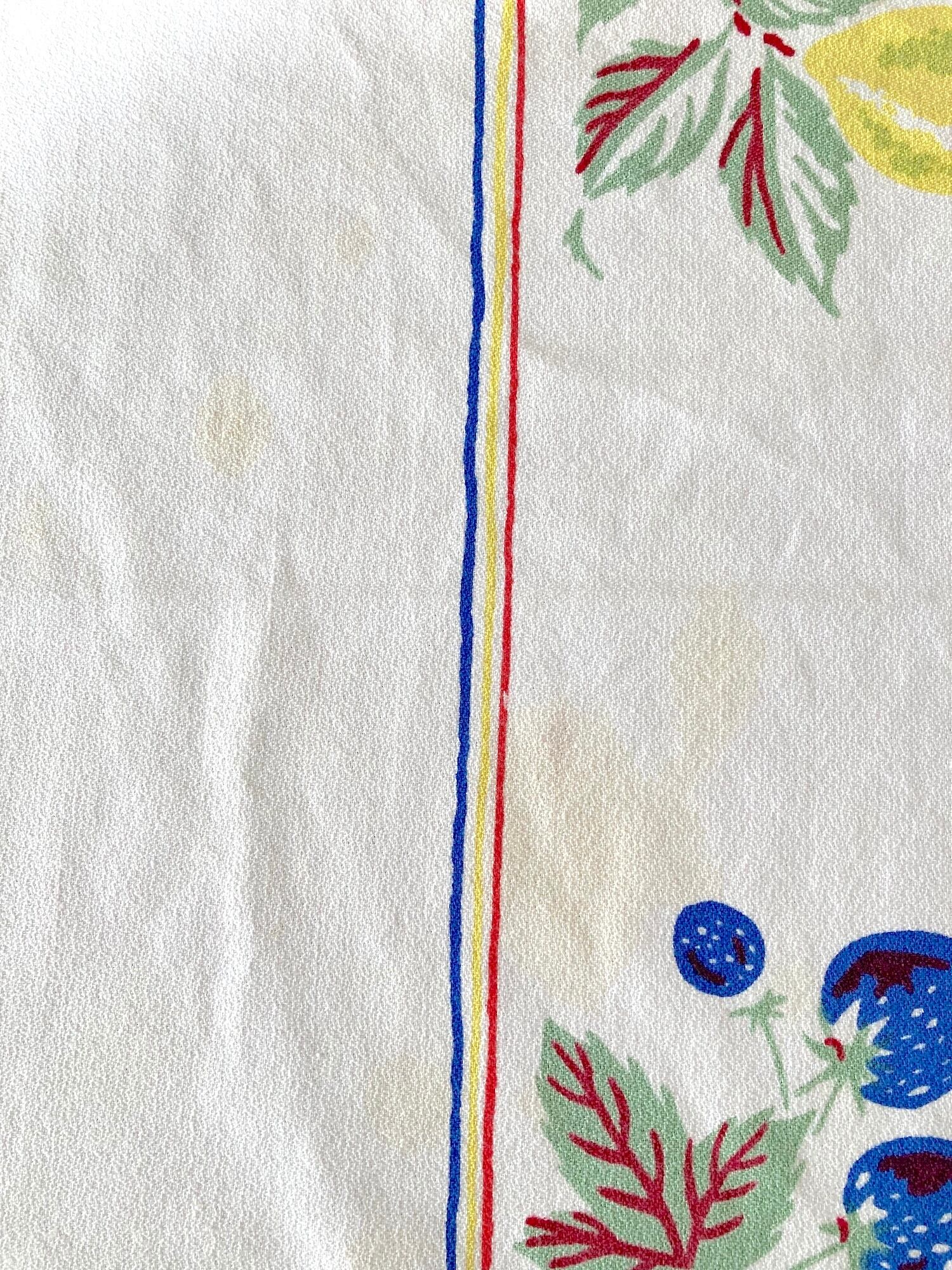 50'sによく見られる、大胆なフルーツのプリントと色使いがポップな、アメリカ製のテーブルクロスです。しっかりとしたコットン生地で大きいので、リメイクやディスプレイにもおすすめです。