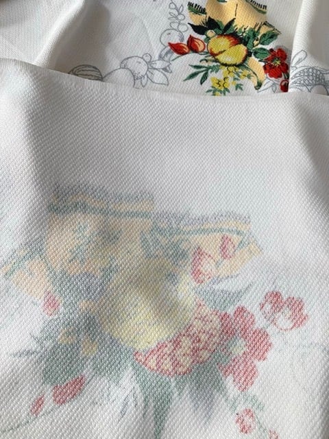 そのままテーブルクロスとして日常を彩るのはもちろん、リメイクの素材として新しい命を吹き込むのも素敵です。実物ならではの手触りと、この布が持つ唯一無二の物語を、ぜひお手元でお楽しみください。